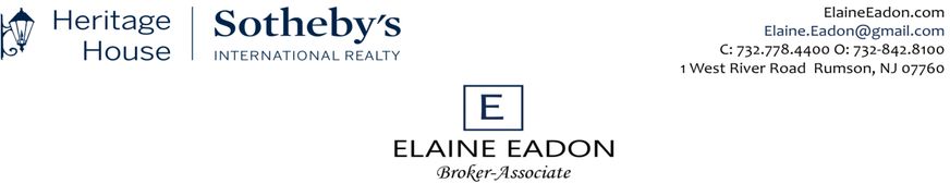 Selecting the right real estate agent is critical to your success, whether you are buying a luxury home or a first home! It can mean thousands of dollars lost if the right person is not representing your interests. A perfectionist, hardworking, seasoned professional, Elaine is dedicated to putting your needs first. She has a proven track record and a broad-based knowledge of the real estate listing market in Monmouth county with total sales over her career of $530,000,000. As a New Jersey native, Elaine knows Monmouth County inside and out. She has lived in Holmdel, Long Branch, Middletown and Rumson and has an office in Fair Haven.